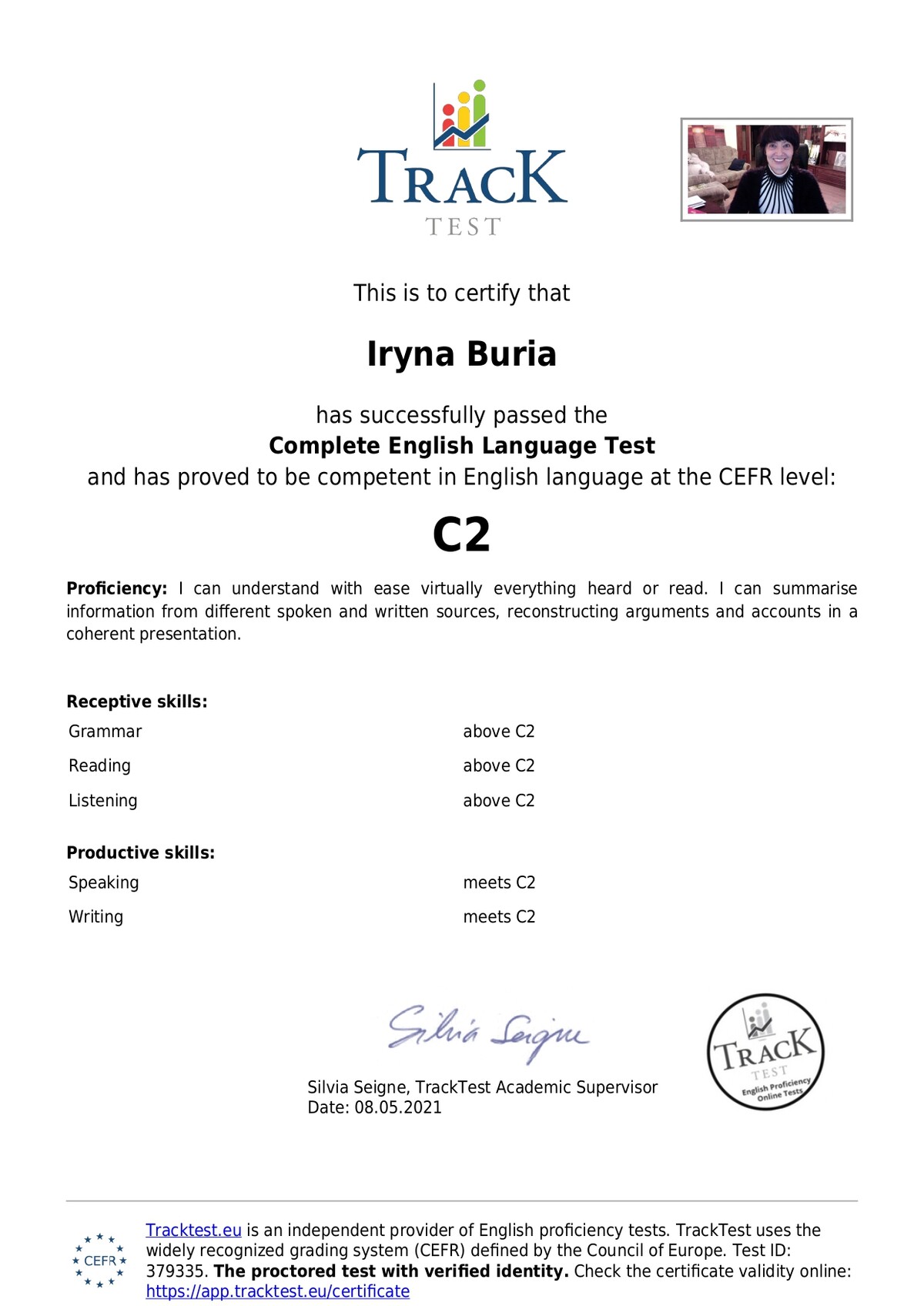Имею два высших образования, TESOL сертифицированный преподаватель английского языка C2 уровня, сертифицированный преподаватель IELTS.